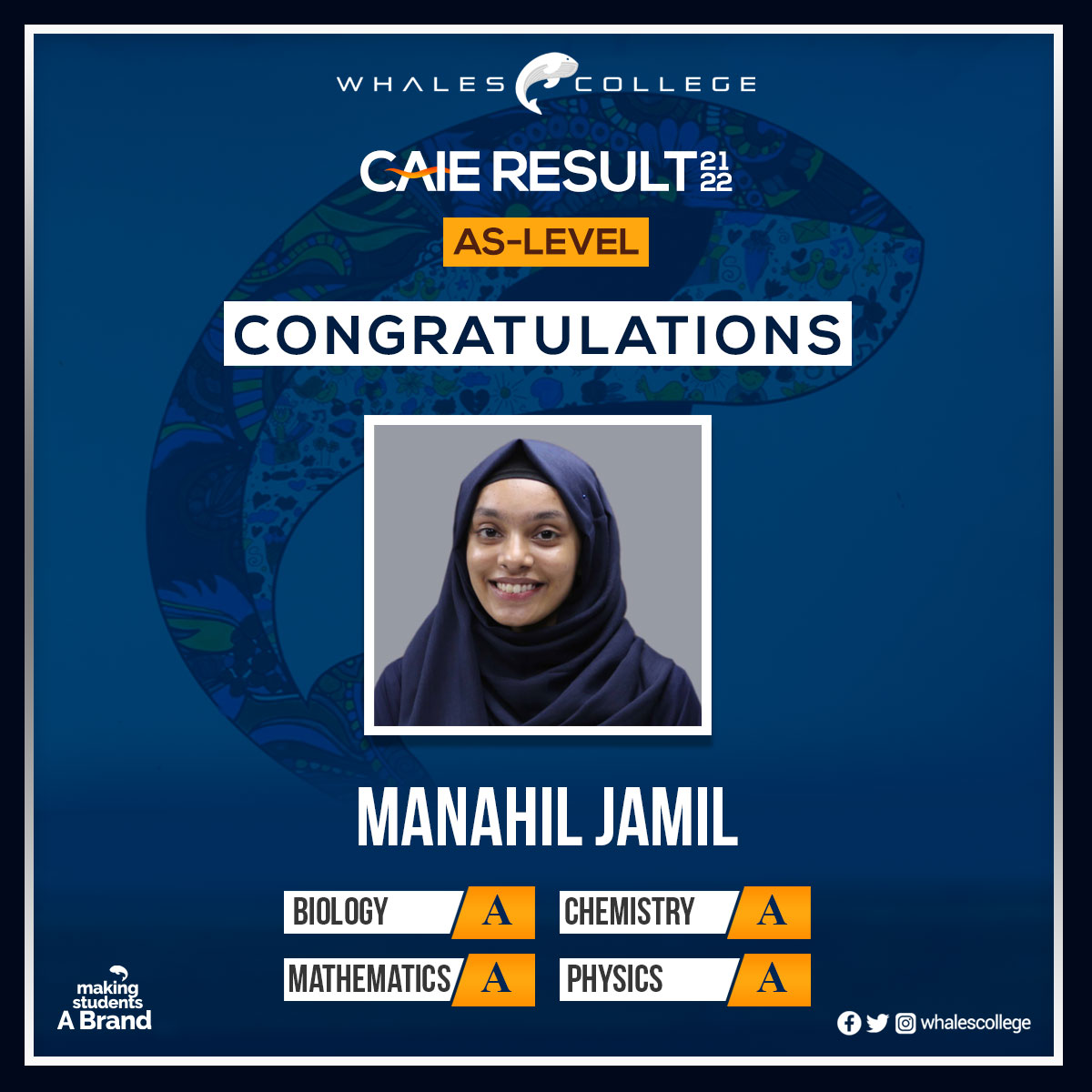 Welcome to the inspiring campus life of Whales College. A day at Whales starts with an eager expansion of knowledge and college preparations, followed by extra-curricular activities. Inside the classroom students involve in rigorous academic programs tailored to meet their unique skillset. We stimulate the learning process of our students through innovative teaching methodologies and freedom of asking. Students at Whales develop a strong foundation in multiple disciplines including, academics, public speaking, critical thinking, and a lot more.